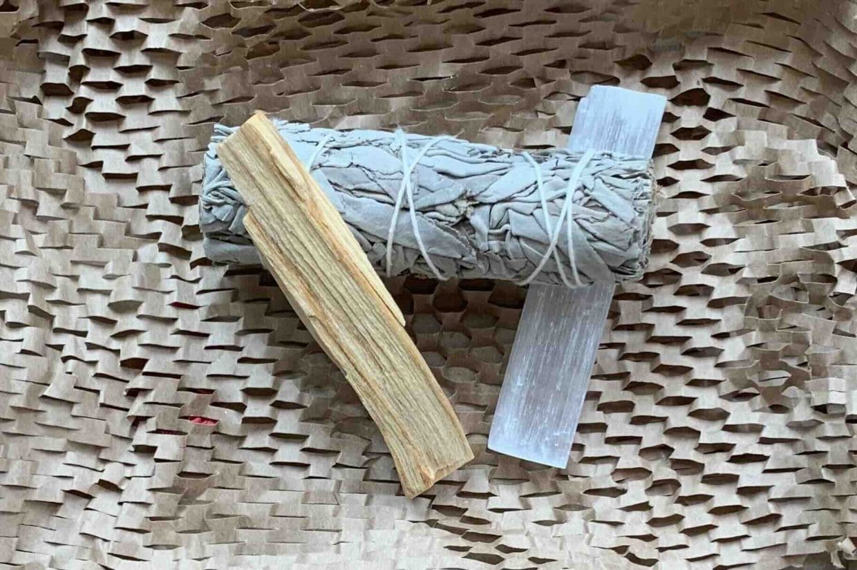 Includes: Palo Santo stick, White Sage bundle, and a Selenite wand